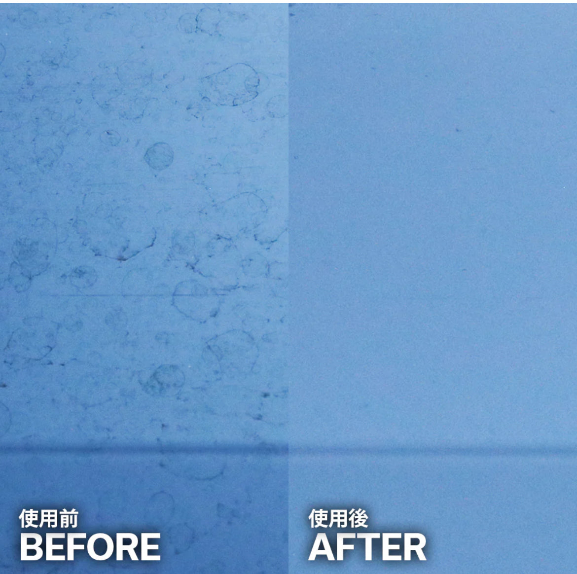 ・アルカリ系溶剤でも除去が困難なカルシウム、マグネシウム由来の汚れを強力に分解除去します。 業務用酸性クリーナーを一般の方でも安心安全に、かつ簡単にご使用頂けるよう一から開発しました。 ノーコンパウンドなのでボディーを削る事はありません。